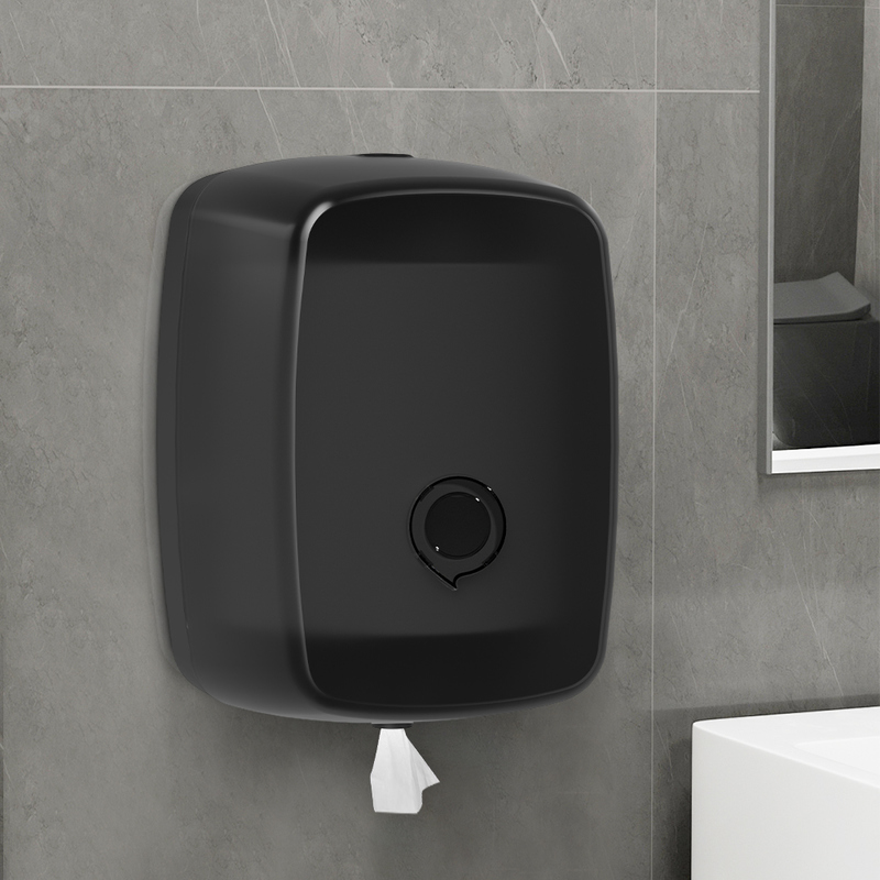 ที่แขวนผนังดีไซน์ทันสมัย ความจุขนาดใหญ่ พลาสติก ABS สีดำโปร่งใส ล็อคได้ ที่จ่ายกระดาษเช็ดมือแบบดึงตรงกลางสำหรับโรงแรม